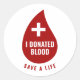 I Donated Blood Save A Life Sticker With Red Blood Droplet & Medical Cross.