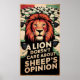 Embrace your inner power with our "A Lion Doesn't Care About Sheep's Opinion" graphic art design. This striking artwork combines a regal lion with bold text to represent strength and self-confidence. Ideal for enhancing wall decor, apparel, and accessories, it’s the perfect way to assert your unique stance and fearless attitude. Explore now and make a statement with art that exudes confidence and individuality!