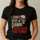 I don't care about what you think — own it. This unapologetic statement tee features distressed lettering on a comfortable women’s basic — ideal for bold wardrobes, bachelorette parties, and anyone who prefers truth over sugarcoating.