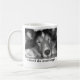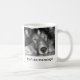 Closeup of a sleeping sheltie face on a coffee mug with "I don't do mornings"