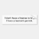 Bumper sticker with the statement "I don't have a license to kill. I have a learner's permit."