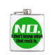 This geology hip flask features a green logo with the text "No. I don't know what that rock is." For those who receive too many requests to name mysterious rocks.