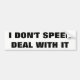 I Don't Speed- Deal With It White Background Bumper Sticker