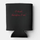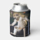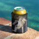 A can-cooler with a funny image of a monkey contemplating life and the slogan; I drink, therefore I am!