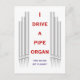 I drive a pipe organ - how do you get to work? makes a delightful front for stickers, postcards to send to musical friends. Features a drawing of pipes with the words I drive to work in large red type and underneath the words 'How do you get to work?' in blue.