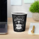 This hot beverage cup features whimsical hand lettering that says "I Followed My Heart and it Led me to Coffee" on a black background. The lettering features decorative swashes and ornamental swirls.
