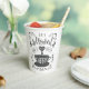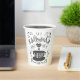 This hot beverage cup features whimsical hand lettering that says "I Followed My Heart and it Led me to Coffee" on a white background. The lettering features decorative swashes and ornamental swirls.