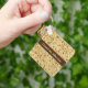 The key chain is made of metal and really sturdy. The flower design is really cheerful. The logo and colors are clear and crisp!