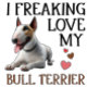 This basic I Freaking Love My Bull Terrier t-shirt features a relaxed fit for the female shape. Made from 100% cotton, this t-shirt is both durable and soft - a great combination if you're looking for that casual wardrobe staple.