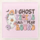Cute, fun, colourful Halloween design features an adorable ghost, bats, flowers, jack-o-lanterns, a mummy, spider web, and text of melon, aqua, lavender, and pink that reads I Ghost People All Year Round! This cute and funny design is great for the Halloween holiday but can be worn any time!