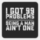 I Got 99 Problems Being A Man Ain't One Square Sticker