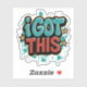 Bold, vibrant, and full of attitude – this urban-inspired design features the empowering phrase "I GOT THIS" in dynamic graffiti lettering. With teal-to-white bubble text, clean red block typography, yellow stars, and gritty teal splashes, it radiates confidence and street-smart flair. Perfect for anyone who needs a daily dose of motivation with an edgy twist.