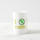 I hate corn. Design uses yellow letters, a green heart and the international "NO" sign to read , "I hate corn". For those that do not "heart" it.