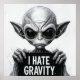 I Hate Gravity Funny Alien Poster – 30x30 Wall Art