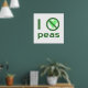 I hate peas. Design uses green letters, a green heart and the international "NO" sign to read , "I hate peas". For those that do not "heart" them, really dislike them, but have a sense of humor (humour), love to laugh and have their funny bone tickled.