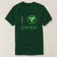 I hate peas. Design uses green letters, a green heart and the international "NO" sign to read , "I hate peas". For those that do not "heart" them, really dislike them, but have a sense of humour (humour), love to laugh and have their funny bone tickled.