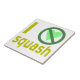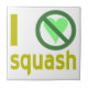 I hate squash. Design uses orange-yellow letters, a green heart and the international "NO" sign to read , "I hate squash". For those that do not "heart" it, really dislike it, but have a sense of humour (humour), love to laugh and have their funny bone tickled.