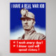 This vintage World War II poster features a proud coal miner and a red, white, and blue background. It declares, "I have a real war job -- I work every day! I know coal will speed victory!" Celebrate American and WW2 History with this digitally restored vintage war poster product from The War Is Hell Store.