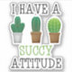 I Have A Succy Attitude. This funny succulent design is a great Christmas or birthday gift idea for a cactus lover and desert plant gardener. Perfect for men, women, girls and boys who loves gardening and cacti! If you’re a succa for succulents, love cactuses in your garden or as houseplants, and you’re interested in botany or are a botanist, then this gardening humour accessory is for you!