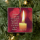 Beautiful custom Christmas ornament depicts a glowing candle and features Bible Verse John 12:46, " I have come into the world as a light, so that no one who believes in me should stay in darkness." The back blessing can be personalised to the details of your choice.~