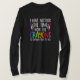I love this artist. Their designs are cute and whimsical. But I ordered too large a size. I don’t mind as I’m going to use it to sleep in. I’ll probably order this in a short sleeve style to wear in the summer. My family loves my chocolate chip cookies so this design has significance for me. Bright and bold. It was off center but that was my fault as I edited the design. Should have left it alone but was just trying out the editing feature. Great editing system to play around with and change things up a little bit