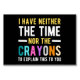 Pick up this funny design saying "I Don't Have The Time Or The Crayons To Explain This To You", perfect for sarcastic people with a unique sense of humor and classy style!