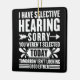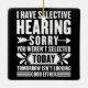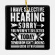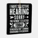 Funny Saying "I Have Selective Hearing Sorry You Weren't Selective Today Tomorrow Isn't Looking Good Either". Features a funny quote about hearing that is awesome for work, gym, school or home. Funny adult humour saying present idea for old people, older men, women, bad listeners.