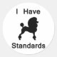 I Have Standards t-shirts, shirts, apparel & gifts feature our clipped Standard Poodle dog breed silhouette with bold I Have Standards text. Such a great shirt for Standard Poodle owners, it definately speaks for itself! Many shirt, t-shirt & apparel choices as well as hats, stickers, mugs, travel mugs and gift items for Poodle dog lovers. Shirts in many styles and colours for men and women, kids and adults, including some made from organic cotton. Sweatshirts and stylish, fun and fashionable shirts, too. We also have other poodle designs, and additional dog breeds.