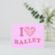 A perfect gift for your favourite dancer, this design expresses the sentiment "I love ballet" with a heart formed out of a pair of pink ballet slippers.