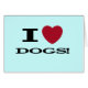 Black text and red heart design for dog lovers reads "I (heart) Dogs!" on I Heart Dogs T-shirts, bodysuits, mugs, cards, tote bags, keychains, and other dog lover apparel and gift items.