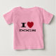 Black text and red heart design for dog lovers reads "I (heart) Dogs!" on I Heart Dogs T-shirts, bodysuits, mugs, cards, tote bags, keychains, and other dog lover apparel and gift items.