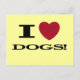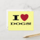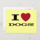 Black text and red heart design for dog lovers reads "I (heart) Dogs!" on I Heart Dogs T-shirts, bodysuits, mugs, cards, tote bags, keychains, and other dog lover apparel and gift items.