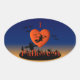 Great design for Halloween - a new twist on an old design. Witch flying across an orange heart and below is a cemetery with an evil scarecrow a couple black cats and bats flying all over. Nice design with a 3D heart.