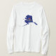 A blue silhouette, or map, of the state of Alaska with the slogan "I Heart (Love) Alaska." Come visit The Great Land.