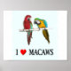 A green wing macaw and a blue & gold macaw is shown with the text, "I heart macaws"
