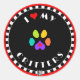 Express your critter love with these eye-catching stickers featuring a colourful paw print amidst "I Heart My Critters. FUN! ~ karyn
