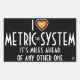 I -heart symbol- the metric system (plus joke) rectangular sticker