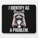 I Identify As A Problem Funny Raccoon Humor Sarcas Mouse Pad