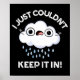 I Just Couldn't Keep It In Funny Weather Cloud Pun features a cute cloud who let loose his load of rain. Perfect pun gift for family and friends who love cute weather cloud puns.