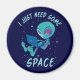 Alien with a laptop computer floating in outer space. Vector illustration drawn in a humourous cartoon style with "I Just Need Some Space" lettering.