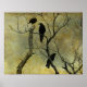 Three crows conversing on branches with multi coloured background. Copyright©Gothicolors All Rights Reserved.