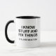 This humourous design is perfect for handymen, dads, grandpa, or mechanics who are always ready to tackle problems. It features the phrase “I Fix Stuff & Know Things It's Just What I Do” and is perfect for birthdays, Father's Day, Christmas, or any occasion where they take pride in their ability to tackle projects and solve problems. This DIY gift is perfect for anyone who loves to fix things and take on challenges.