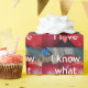 The text "I know what I love" is overlaid in bold, modern white typography, ensuring clarity and impact. A red location pin icon cleverly replaces the "o" in "love," adding a whimsical touch that symbolises connection and passion. The background is slightly blurred, showcasing fabric and a dark surface that enhances the prominence of the apples and text.