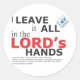 I leave it all in the LORD Isaiah 49:4 (New Living Translation, Second Edition) I replied, “But my work seems so useless! I have spent my strength for nothing and to no purpose. Yet I leave it all in the Lord’s hand; I will trust God for my reward.”