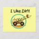 A yellow front end loader and text that reads "I Like Dirt!" on construction design T-shirts, mugs, cards, hoodies, bodysuits, keychains, tote bags, and other front end loader apparel and gifts.