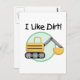 A yellow front end loader and text that reads "I Like Dirt!" on construction design T-shirts, mugs, cards, hoodies, bodysuits, keychains, tote bags, and other front end loader apparel and gifts.