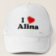 I love Alina! Is your name Alina? Do you have a husband, boyfriend, male family member or male friend who you know loves you? Or do you have a wife, girlfriend, female family member or female friend named Alina whom you love deeply? If so, this "I Love" hat is exactly the gift that you're looking for! The design features the letter "I" in black lettering with a red heart on the top and "Alina" in black lettering on the bottom.