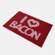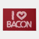 I heart bacon saying with letters created from bacon strips. Custom background colour.