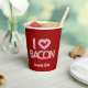 Bacon saying with letters created from bacon strips. Custom background colour. Custom text on both sides.