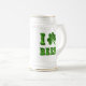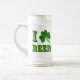 The perfect stein for a beer lover on Saint Patrick's Day! Funny slogan - I Love Beer with three heart lucky Irish shamrock and retro typography on green.